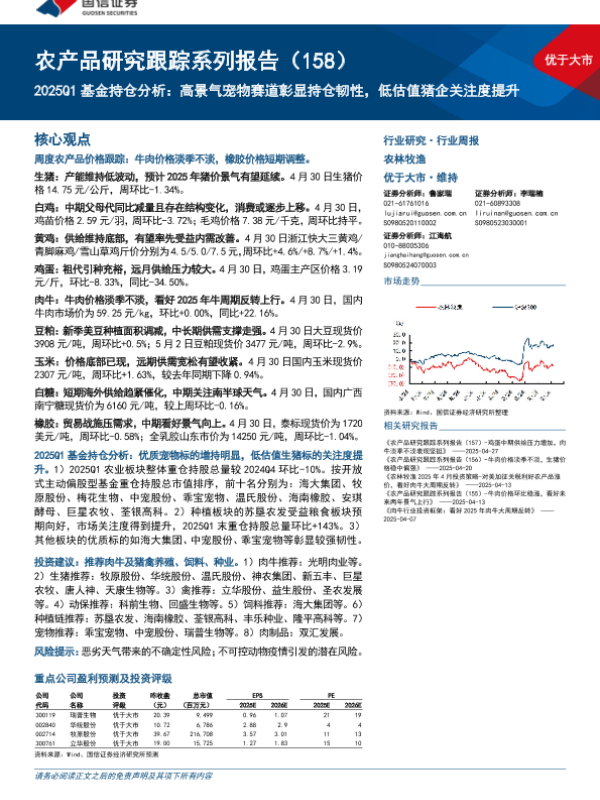 【国信证券】【20250505】2025Q1基金持仓分析:高景气宠物赛道彰显持仓韧性,低估值猪企关注度提升-32页 证券期货研究报告