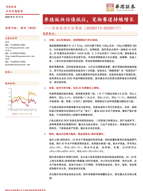 【华源证券】【20250120】农林牧渔行业周报:养殖板块估值低位,宠物赛道持续增长-16页 行业研究