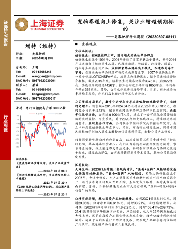 【上海证券】【20230813】美容护理行业周报:宠物赛道向上修复,关注业绩超预期标的-19页 行业研究