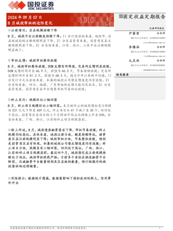 【国投证券】【20240907】固定收益定期报告:8月城投审批的边际变化-11页 行业研究