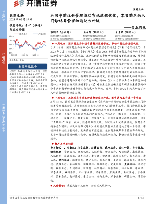 【开源证券】【20230219】加强中药注册管理推动审批流程优化,零售药店纳入门诊统筹管理加速处方外流-13页 行业研究