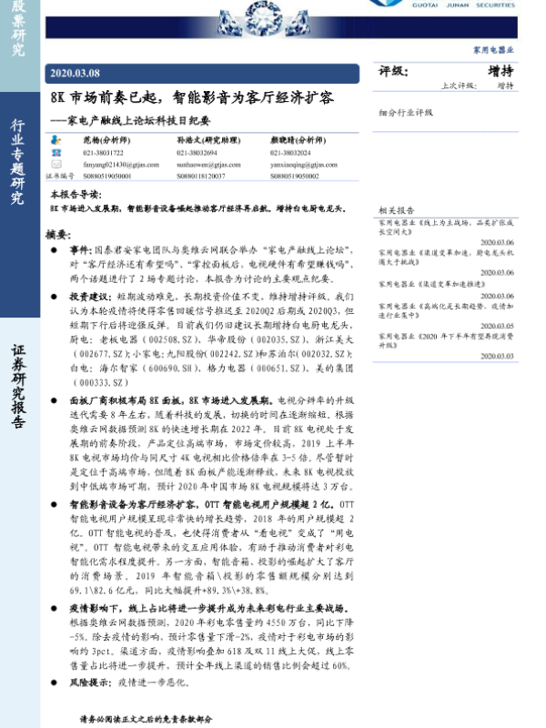 【国泰君安证券】【20200308】8K市场前奏已起,智能影音为客厅经济扩容-7页 会议纪要