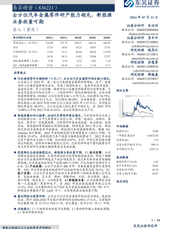 【东吴证券】【20240711】易实精密(836221)全方位汽车金属零件研产能力领先,新能源业务放量可期-24页 行业研究