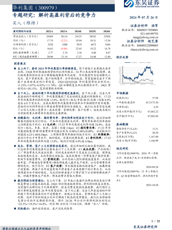 【东吴证券】【20240726】华利集团(300979)专题研究:解析高盈利背后的竞争力-22页 行业研究