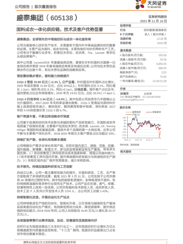 【天风证券】【20211116】盛泰集团:面料成衣一体化供应链,技术及客户优势显著-31页 行业研究
