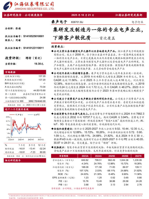【江海证券】【202510】集研发及制造为一体的专业电声企业_下游客户较优质-22页 证券期货研究报告