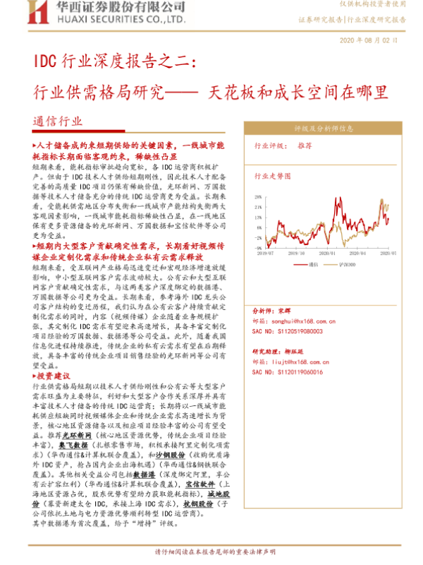 【华西证券】【20200802】IDC行业深度报告之二:行业供需格局研究——天花板和成长空间在哪里-39页 行业研究