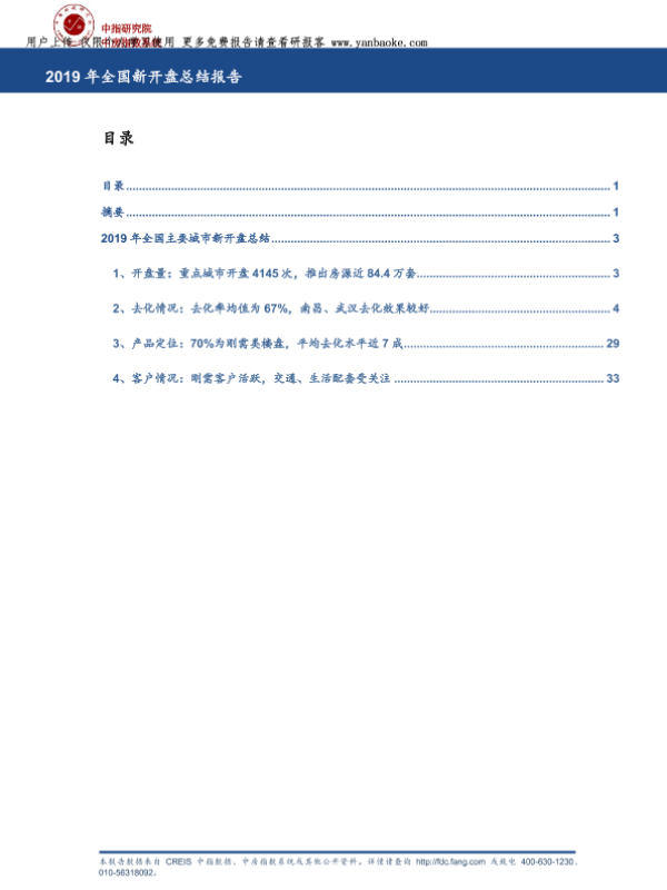 【中指研究院】【2019】2019年全国新开盘总结报告-35页 市场调研
