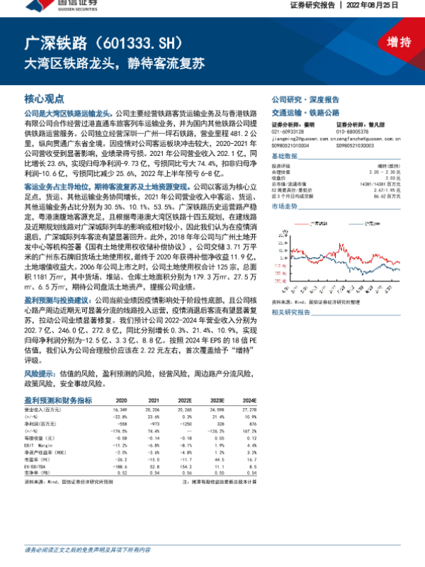 【国信证券】【20220825】大湾区铁路龙头,静待客流复苏-24页 行业研究