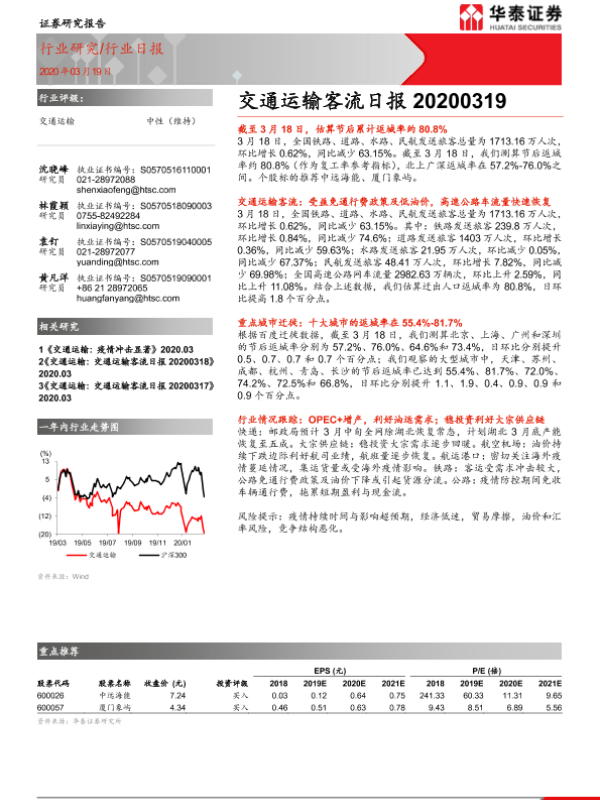 【华泰证券】【20200319】交通运输客流日报-6页 行业研究