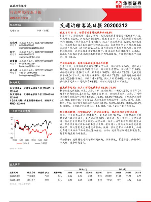 【华泰证券】【20200312】交通运输客流日报-5页 行业研究