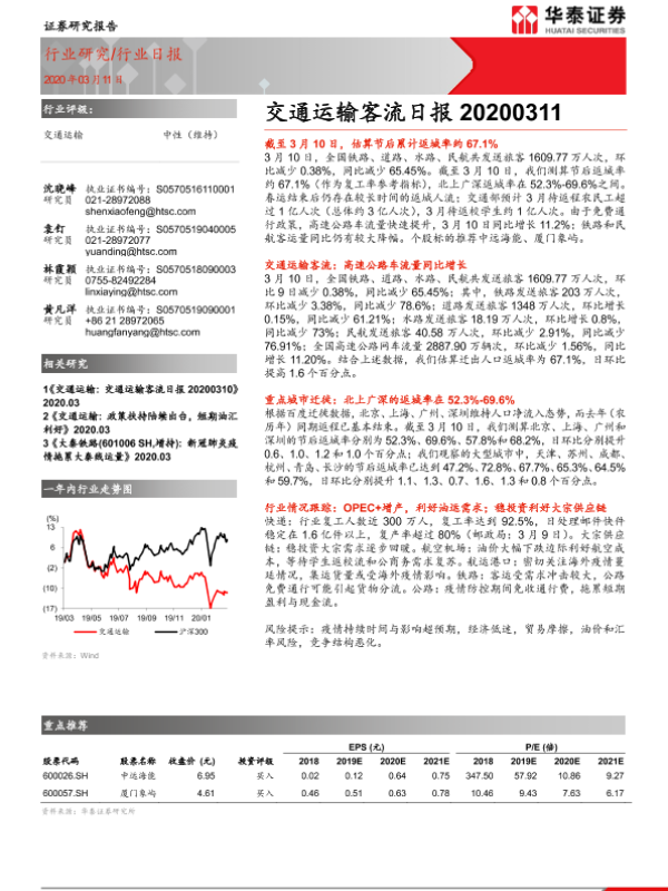 【华泰证券】【20200311】交通运输客流日报-5页 行业研究