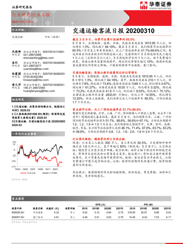 【华泰证券】【20200310】交通运输客流日报-5页 行业研究