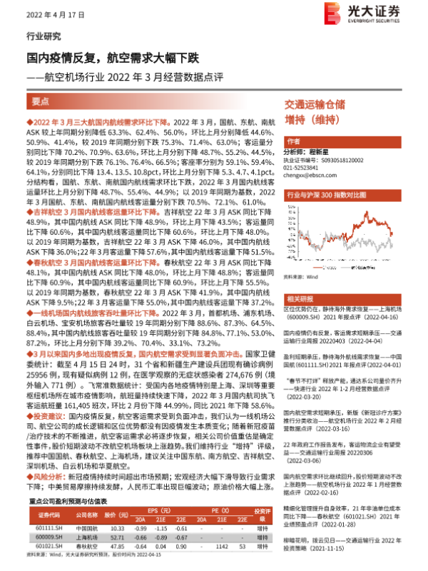 【光大证券】【20220417】航空机场行业2022年3月经营数据点评-7页 行业研究
