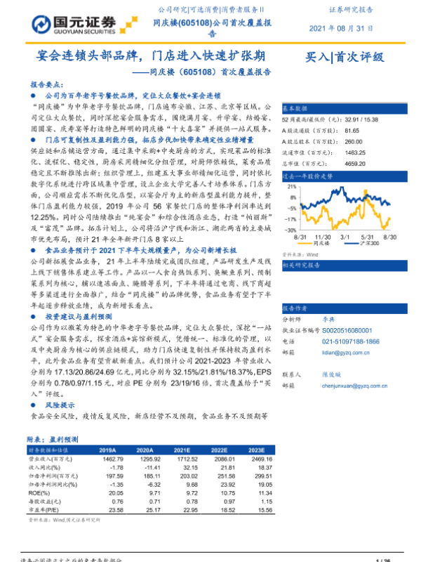 【国元证券】【20210831】同庆楼首次覆盖报告:宴会连锁头部品牌,门店进入快速扩张期-26页 公司研究