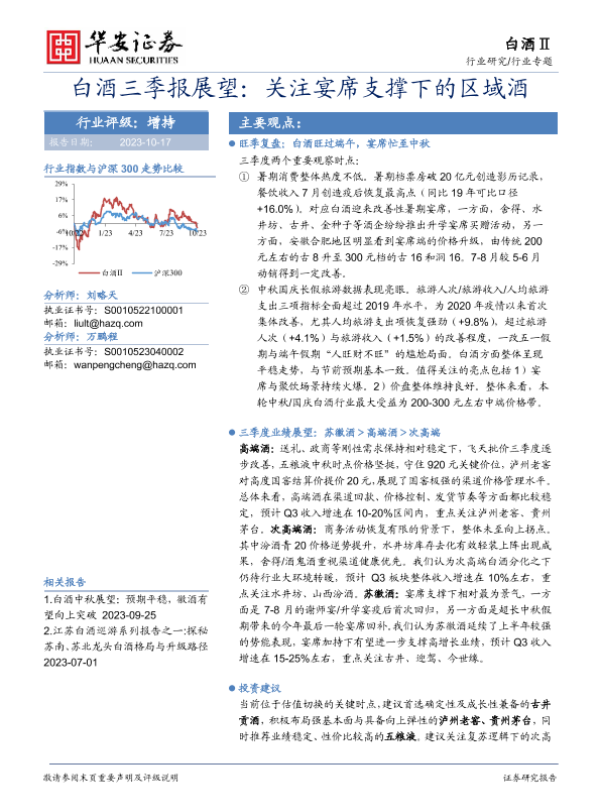 【华安证券】【20231017】白酒三季报展望:关注宴席支撑下的区域酒-12页 行业研究