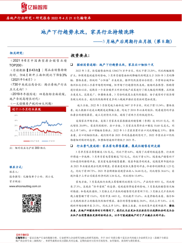 【亿翰智库】【20220421】3月地产后周期行业月报:地产下行趋势未改,家具行业持续洗牌-9页 行业研究