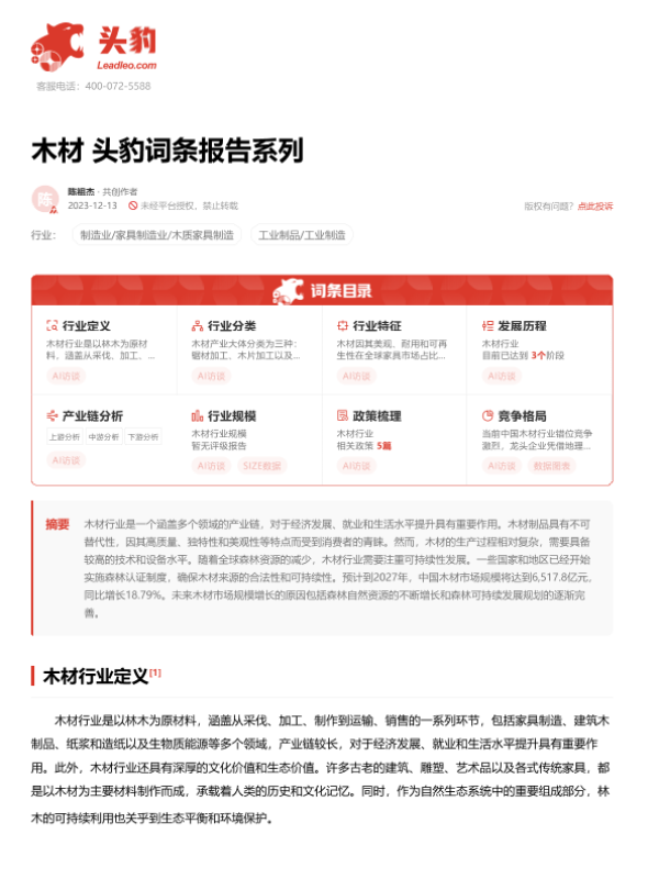 【头豹研究院】【20231229】木材 头豹词条报告系列-19页 行业研究