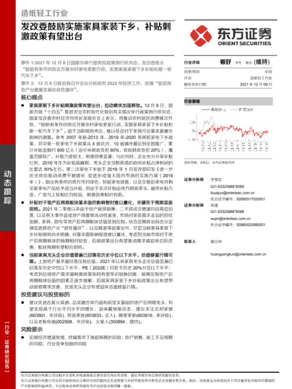 【东方证券】【20211209】造纸轻工行业:发改委鼓励实施家具家装下乡,补贴刺激政策有望出台-5页 行业研究