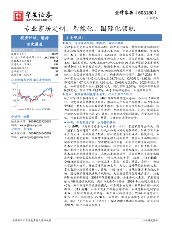 【华安证券】【202511】金牌家居(603180):专业家居定制,智能化、国际化领航-30页 证券期货研究报告