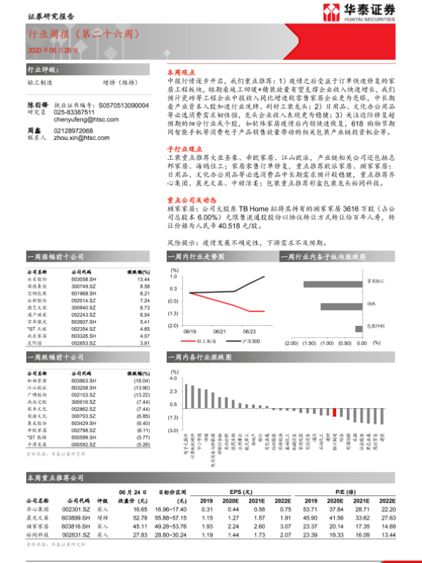 【华泰证券】【20200628】20200628-华泰证券-轻工制造行业周报(第二十六周)-8页 行业研究