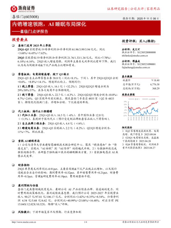 【浙商证券】【202511】内销增速领跑,AI睡眠布局深化——喜临门点评报告-4页 证券期货研究报告