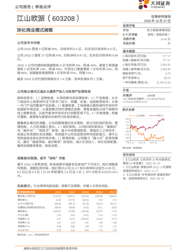 【天风证券】【202510】江山欧派-季报点评 25Q3营收同减49%,归母净利-0.5亿-3页 证券期货研究报告