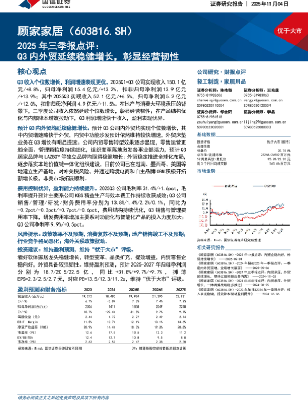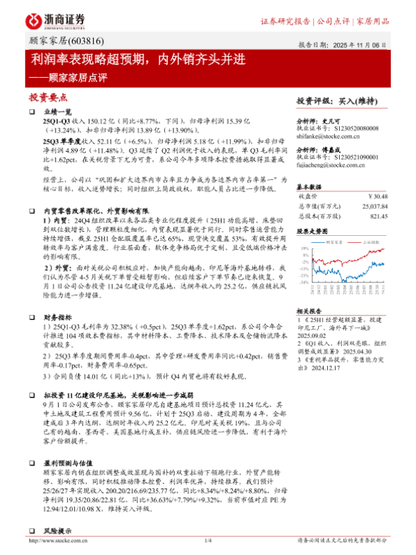 【浙商证券】【202511】利润率表现略超预期,内外销齐头并进——顾家家居点评-4页 证券期货研究报告