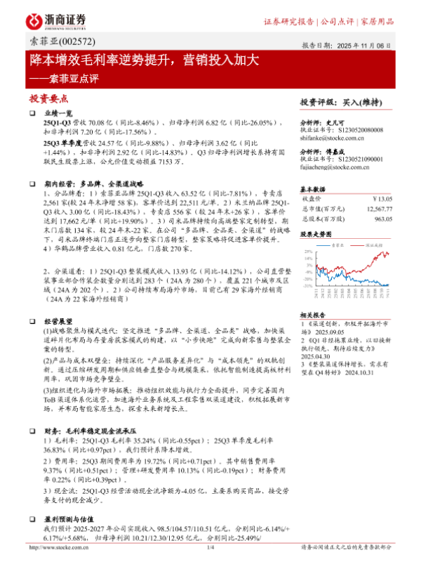 【浙商证券】【202511】降本增效毛利率逆势提升,营销投入加大——索菲亚点评-4页 证券期货研究报告