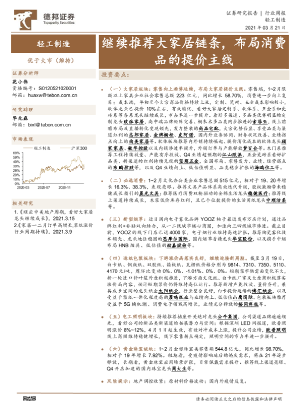 【德邦证券】【20210321】轻工制造行业周报:继续推荐大家居链条,布局消费品的提价主线-16页 证券期货研究报告
