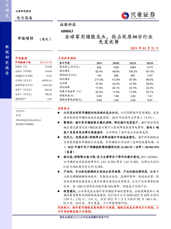 【兴业证券】【20210111】全球家用储能龙头,抢占优质细分行业先发优势-24页 行业研究