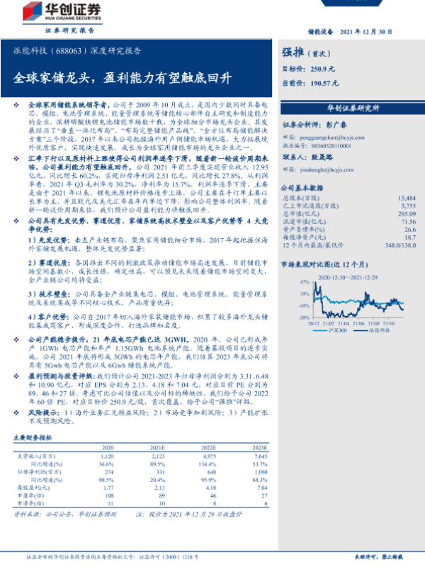 【华创证券】【20211230】20211230-华创证券-派能科技-688063.SH-深度研究报告:全球家储龙头,盈利能力有望触底回升-28页 行业研究