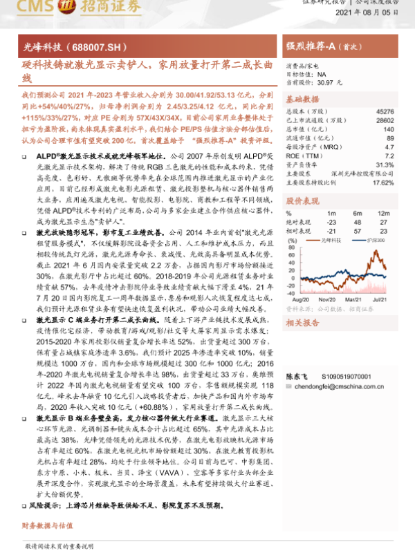 【海通证券】【20210805】硬科技铸就激光显示卖铲人,家用放量打开第二成长曲线-34页 证券期货研究报告