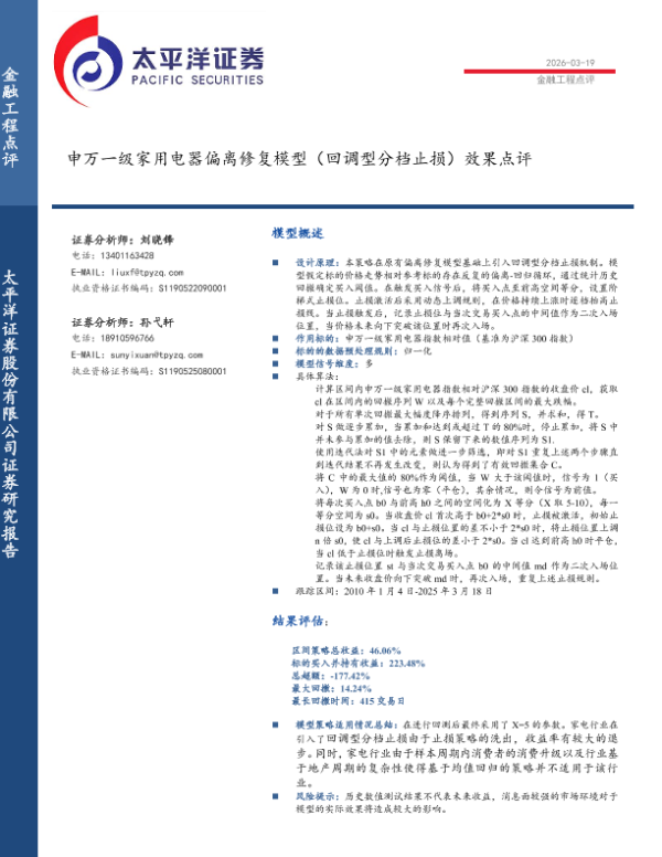 【太平洋证券】【202603】申万一级家用电器偏离修复模型(回调型分档止损)效果点评-4页 证券期货研究报告