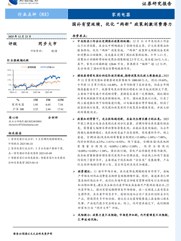 【财信证券】【202512】家用电器_国补有望延续_优化_两新_政策刺激消费潜力-2页 证券期货研究报告