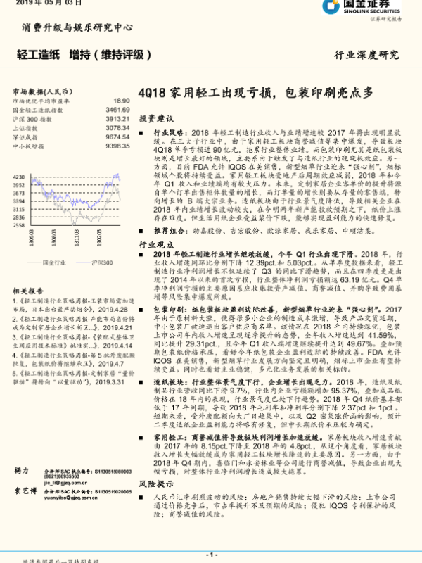 【国金证券】【20190503】20190503-国金证券-轻工造纸行业深度研究:4Q18家用轻工出现亏损,包装印刷亮点多-17页 行业研究
