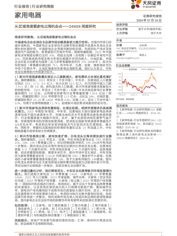 【天风证券】【20240703】家用电器24W26周度研究:从区域角度看家电出海机会点-17页 行业研究