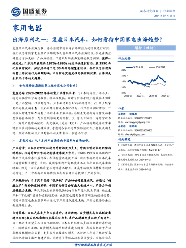 【国盛证券】【20240718】家用电器行业出海系列之一:复盘日本汽车如何看待中国家电出海趋势-31页 行业研究