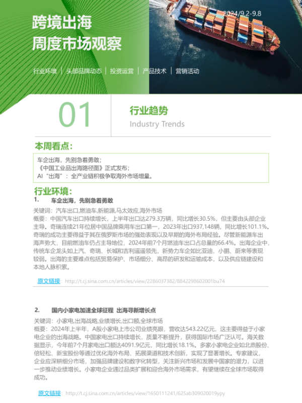 【艾瑞咨询】【20240908】跨境出海行业周度市场观察-8页 行业研究