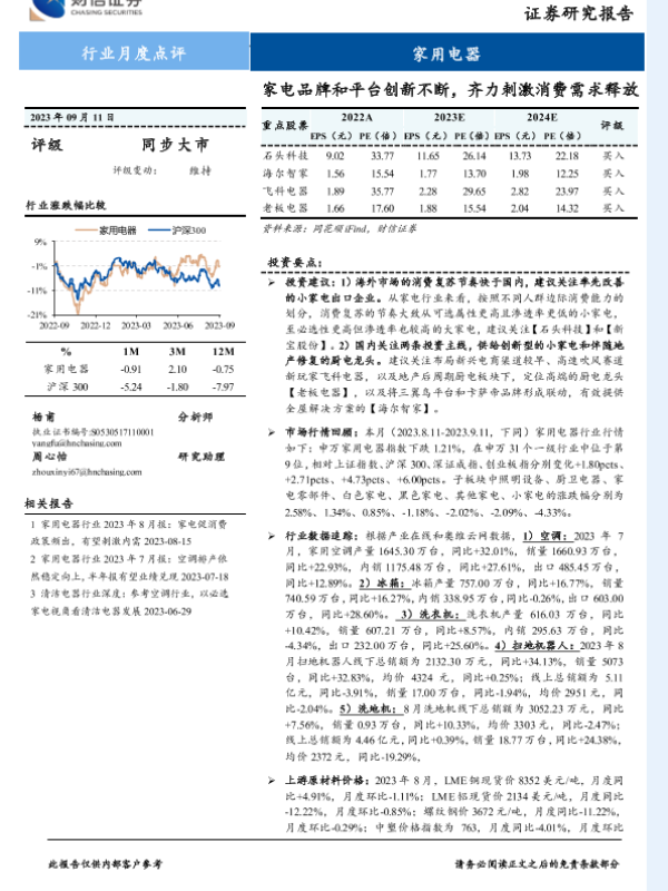 【财信证券】【20230911】家用电器行业月度点评:家电品牌和平台创新不断,齐力刺激消费需求释放-13页 行业研究