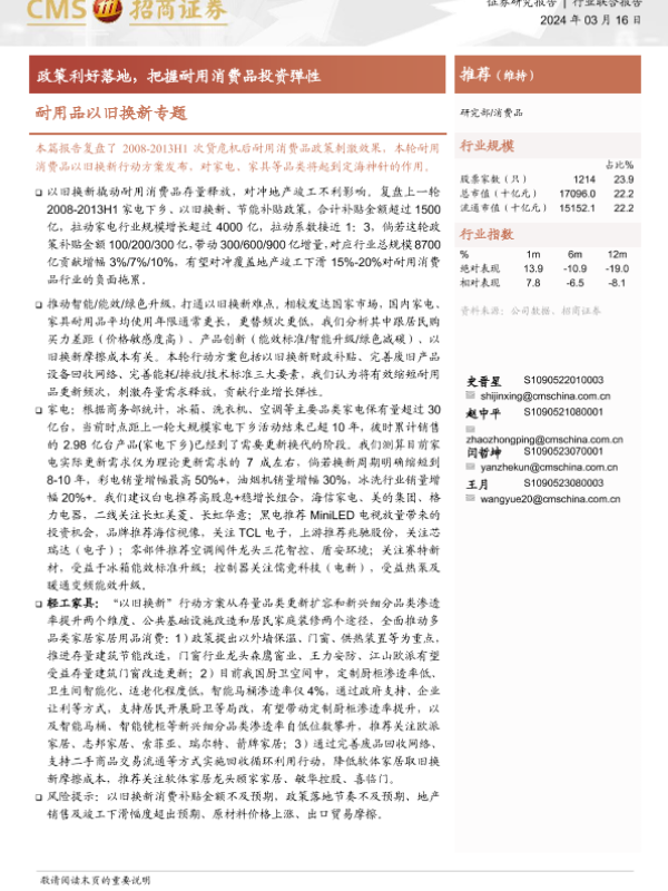 【海通证券】【20240316】耐用品以旧换新专题:政策利好落地,把握耐用消费品投资弹性-22页 行业研究
