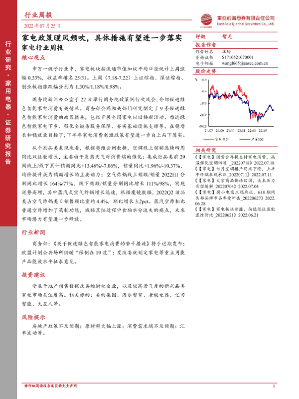【东亚前海证券】【20220725】20220725-东亚前海证券-家用电器行业周报:家电政策暖风频吹,具体措施有望进一步落实家电行业周报-15页 行业研究