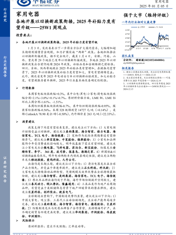【华福证券】【20250105】家用电器25W1周观点:各地开展以旧换新政策衔接,2025年补贴力度有望升级-14页 行业研究