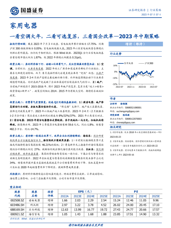 【国盛证券】【20230707】家用电器2023年中期策略:一看空调大年,二看可选复苏,三看国企改革-36页 行业研究
