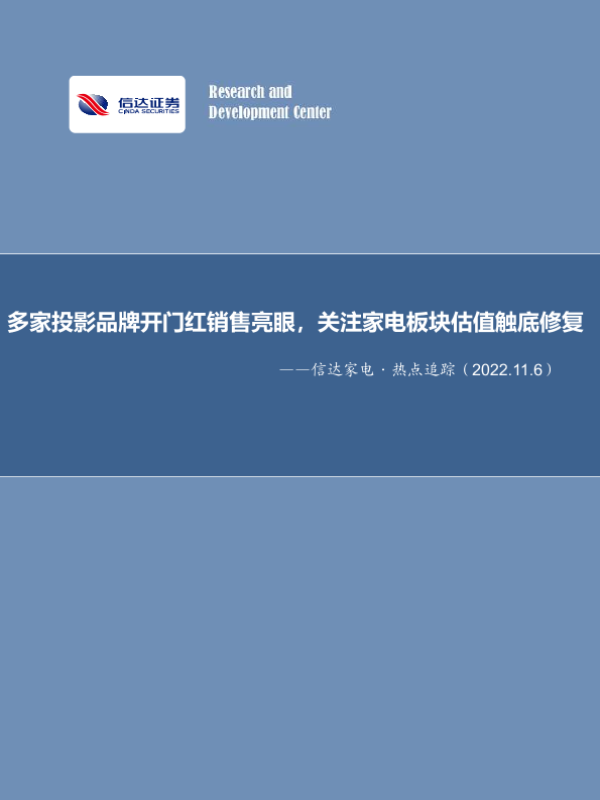 【信达证券】【20221106】信达家电·热点追踪:多家投影品牌开门红销售亮眼,关注家电板块估值触底修复-13页 行业研究