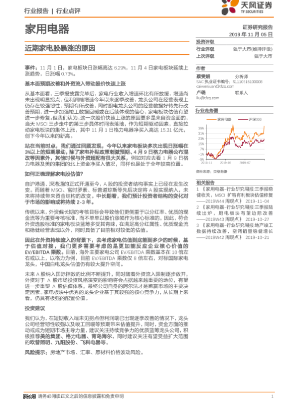 【天风证券】【20191105】家用电器行业点评:近期家电股暴涨的原因-7页 行业研究