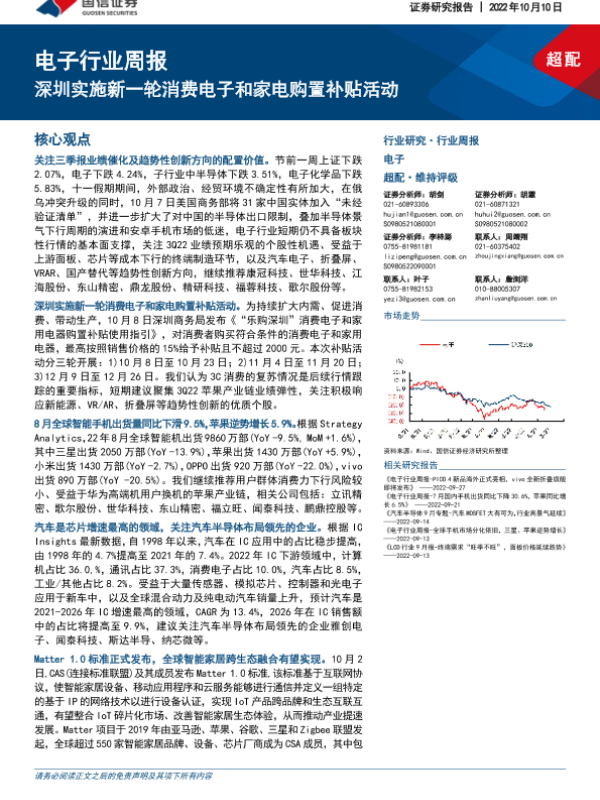 【国信证券】【20221010】电子行业周报:深圳实施新一轮消费电子和家电购置补贴活动-13页 行业研究