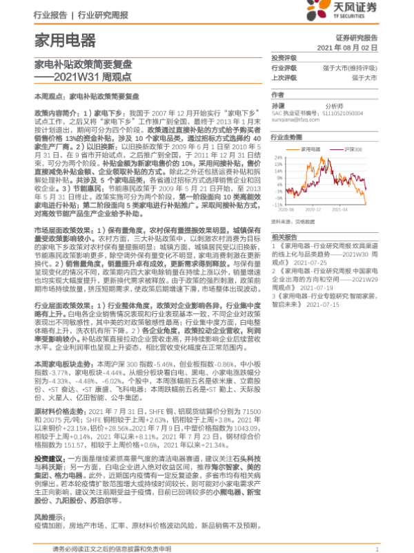 【天风证券】【20210802】家用电器2021W31周观点:家电补贴政策简要复盘-16页 行业研究