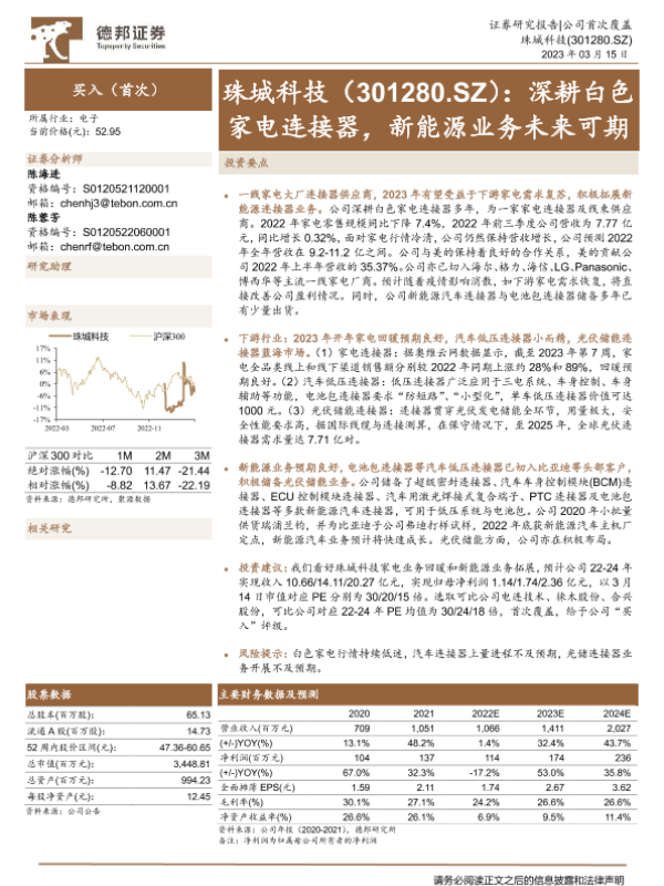 【德邦证券】【20230315】深耕白色家电连接器,新能源业务未来可期-20页 行业研究