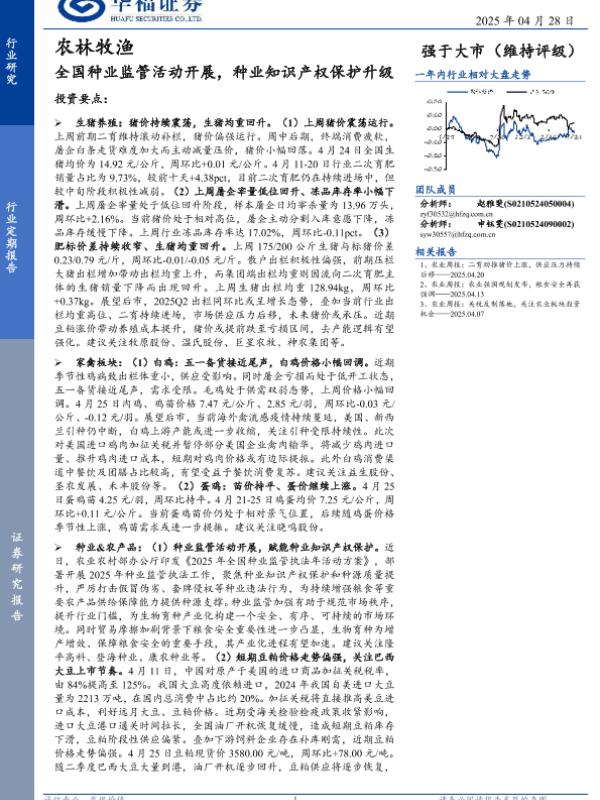 【华福证券】【20250428】农林牧渔行业定期报告:全国种业监管活动开展,种业知识产权保护升级-12页 行业研究